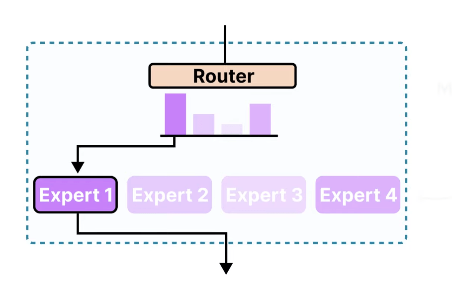 Whereas Sparse Mixture of Experts (MoE) selects a few experts and aggregates their weighted outputs, its computational efficiency stems from activating only a subset of experts at a time. For instance, Mixtral 8x7B consists of eight experts, each with 5.6 billion parameters. Although the model has a total of 47 billion parameters when fully loaded, it activates approximately 13 billion parameters during inference. This selective activation makes it significantly faster than its total parameter count would suggest.