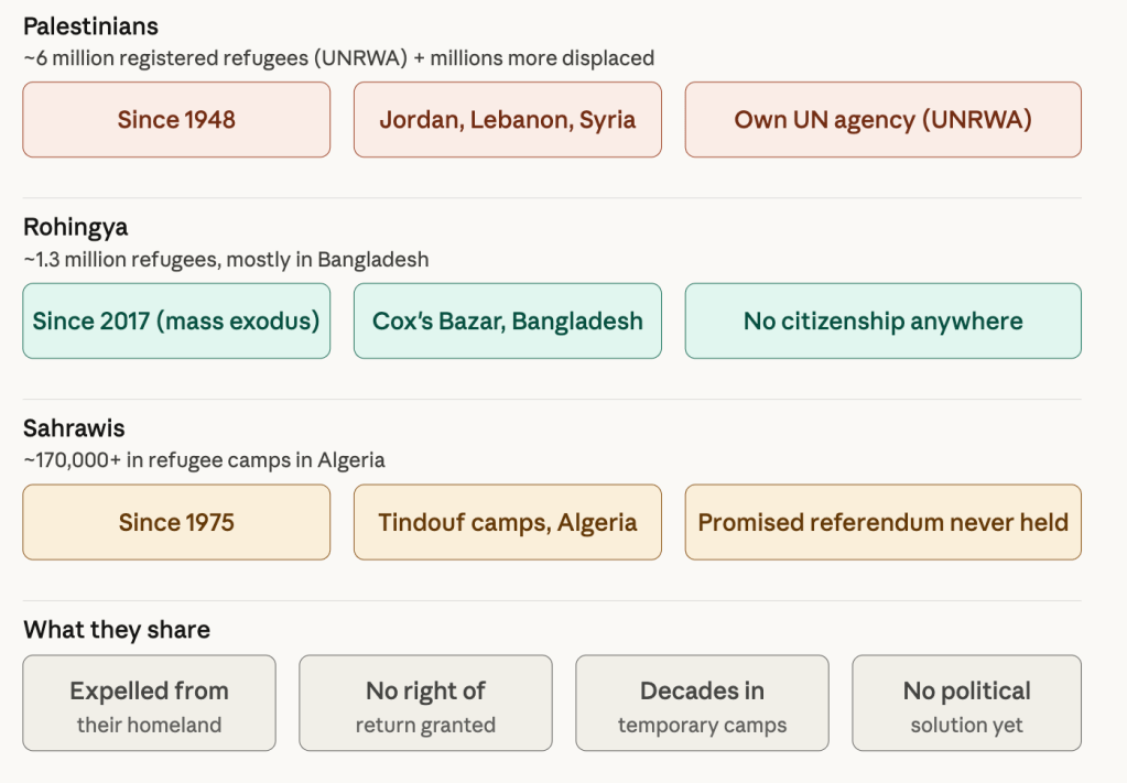 Palestinians, Rohingya, and Sahrawis are not refugees waiting to go home. They are stateless — not by accident, but by design. This is not a conflict with two equal sides; it is the slow, deliberate erasure of a people. And silence, in the face of erasure, is not neutrality — it is complicity.